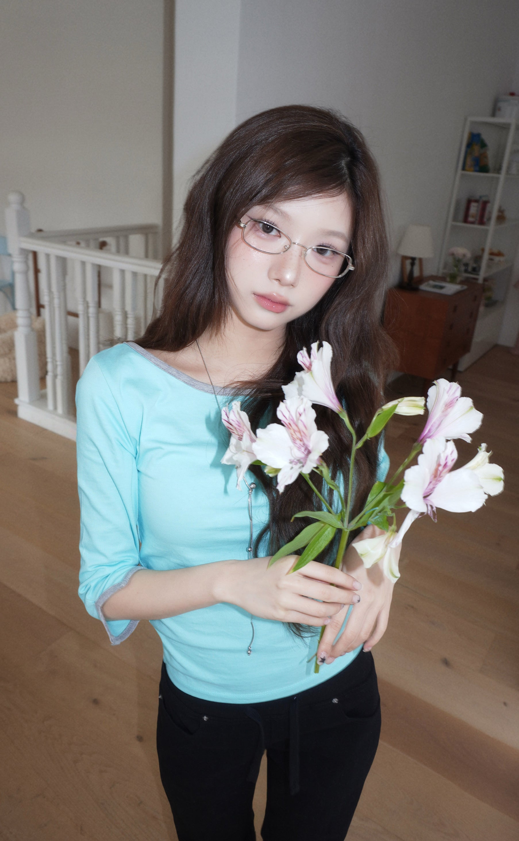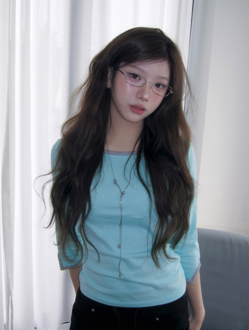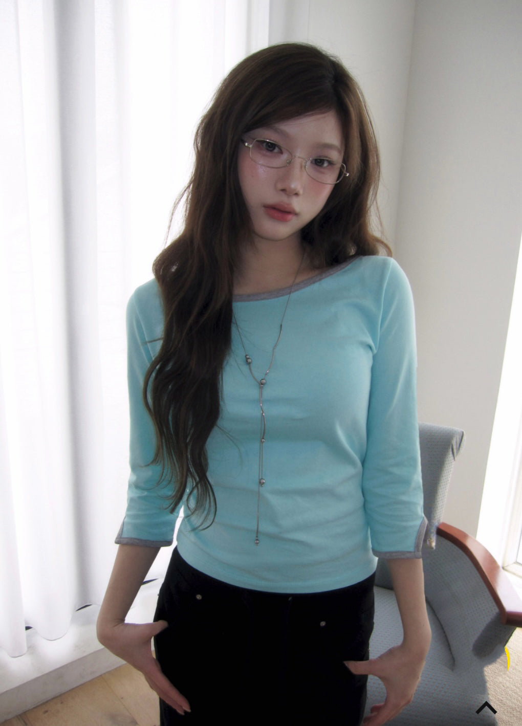 韓牌自家製3/4袖拼色Top 四色入